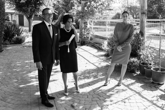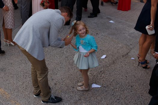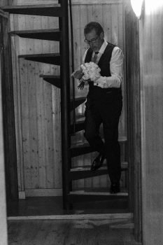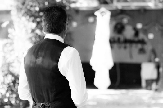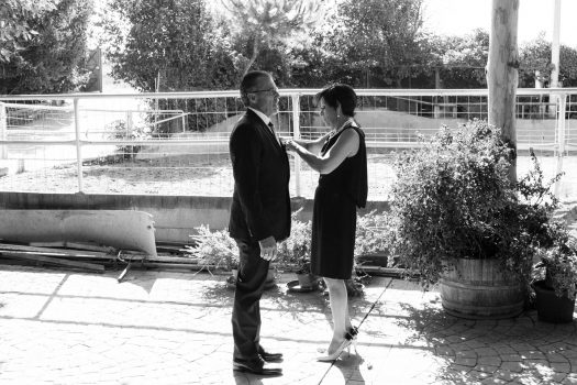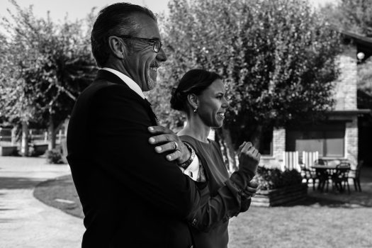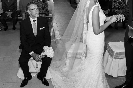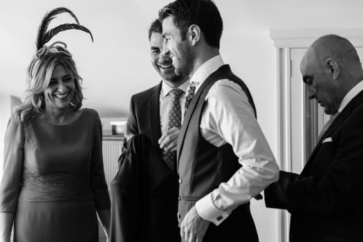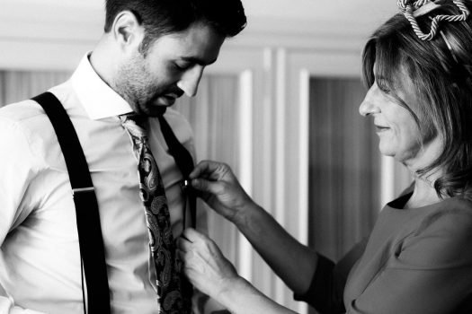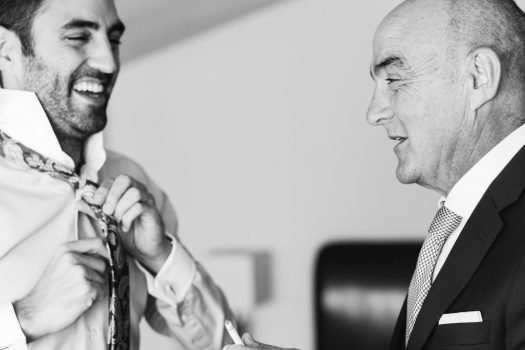 Primeramente, estuvimos con el novio, se vistió en casa con su familia y amigos y pasamos unos momentos muy divertidos. Después fuimos a casa de la novia, Ana, y allí vivimos otros acontecimientos más emocionantes. Pudimos recoger la mirada del padre de la novia, al ver el vestido de su hija y más tarde los gestos y sentimientos al verla ya vestida de novia. Los últimos toques que la madre daba a su padre y a la novia.