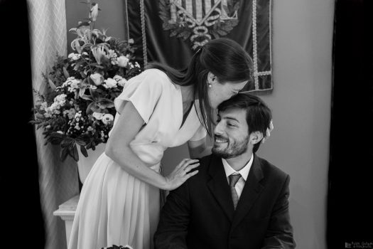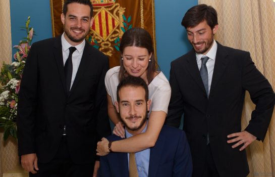 La boda fue entresemana un jueves. Fue algo muy íntimo, una ceremonia civil en los Jardines de Monforte junto con su familia. Los Jardines de Monforte, son los últimos jardines histórico-artísticos del siglo XIX que quedan en la ciudad de Valencia, con 33 estatuas de mármol, estanques y surtidores. En su Palacete es el lugar donde se ofician las bodas civiles.